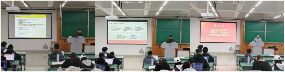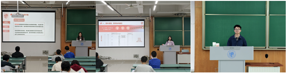 聚焦不同年级学生学业发展痛点,推出分层化赋能举措。本科生第二党支部杨赫祎、苗毅凡深入2023级、2025级年级大会,针对性解读选课规则与培养方案,向2023级本科生明确限选课程组选课标准,为2025级本科生详解三轮选课注意事项及通识课学分要求,帮助学生科学规划学业路径。同时,围绕数学基础课程复习技巧、科研竞赛启蒙、升学就业规划等内容开展学习经验交流会,为各年级学生搭建起朋辈互助的学习桥梁。