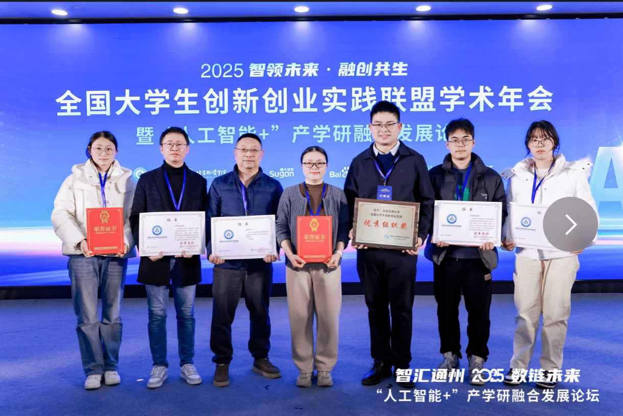 在评选中脱颖而出,由卢鹏老师指导的数学建模作品荣获优秀案例奖,王璐老师荣获指导教师优秀事迹奖,学院双创成果同步在年会现场集中展示,引发与会嘉宾广泛关注。